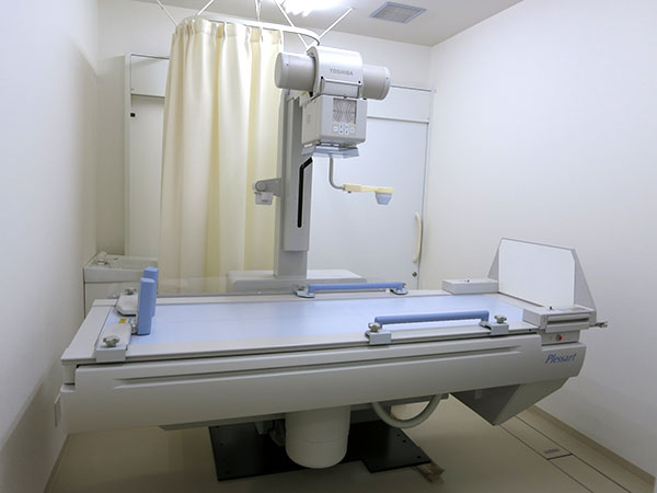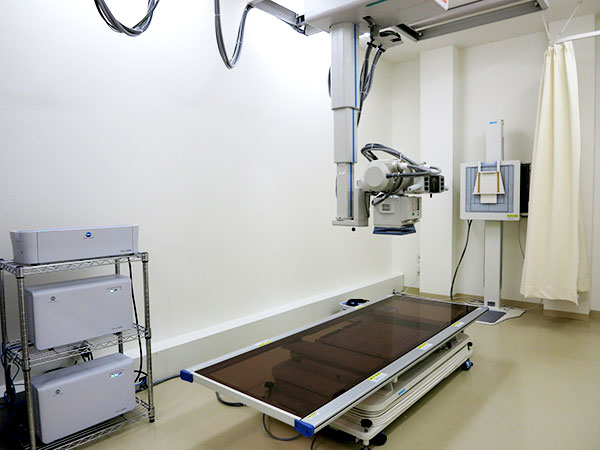 腹部レントゲン検査は腹腔内に異常が無いかどうかを調べるための基本的な検査です。腹部臓器の状態、腸閉塞や腸管穿孔、異常なガスや腹水、結石の有無などがわかります。レントゲン装置を使って腹部そして骨の簡易な検査を行います。